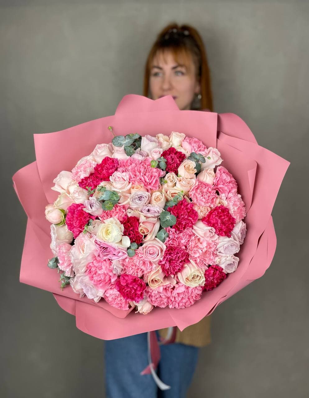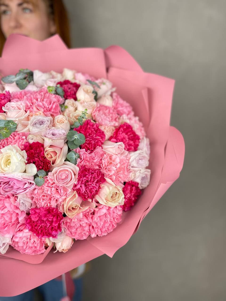 французские розовые розы в оформлении с эвкалиптом  На фото 11.
