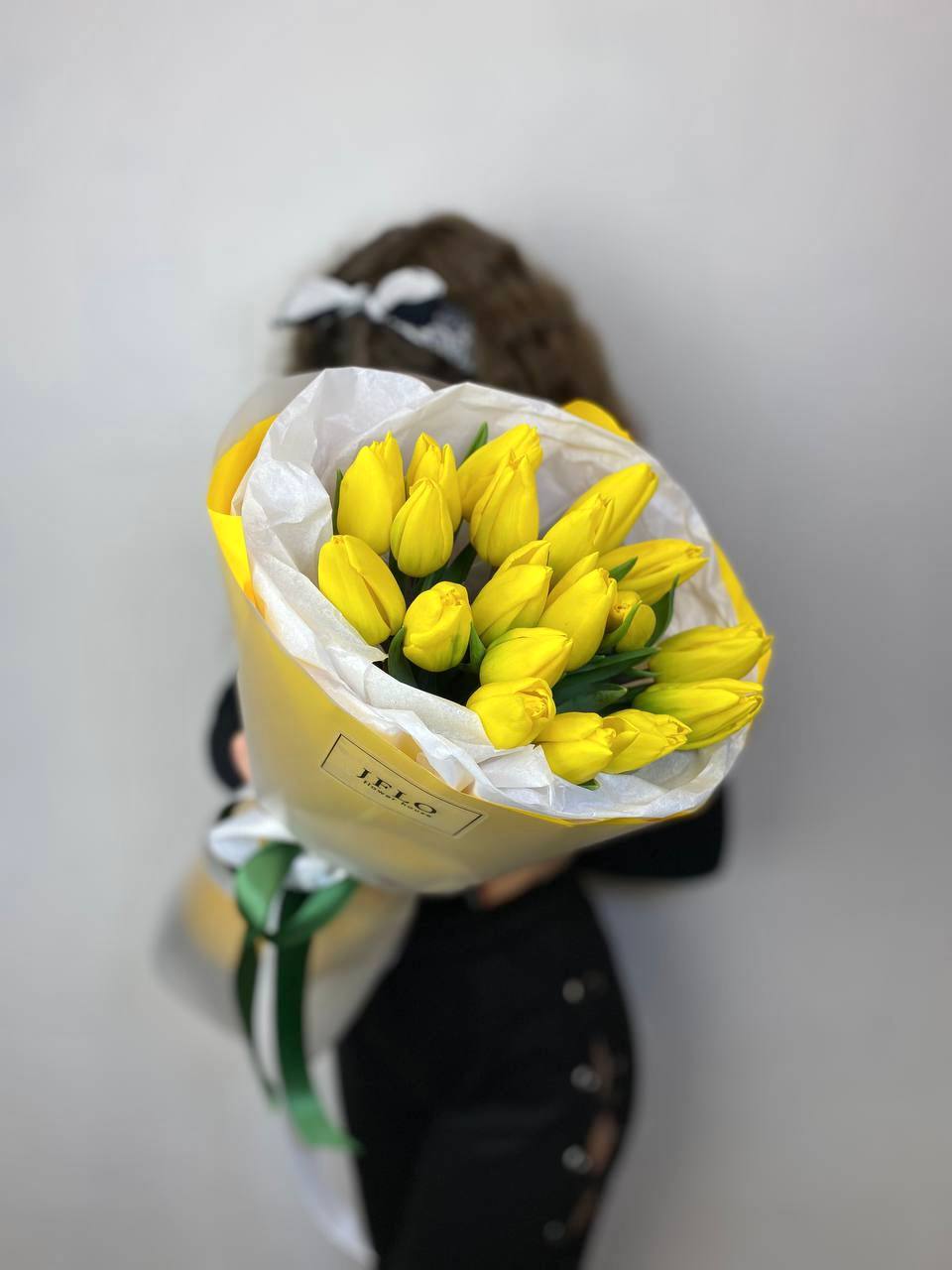 Бутоны держат форму долго и радуют свежестью. Девятнадцать жёлтых тюльпанов в лаконичной упаковке удобны для размещения в любом интерьере.