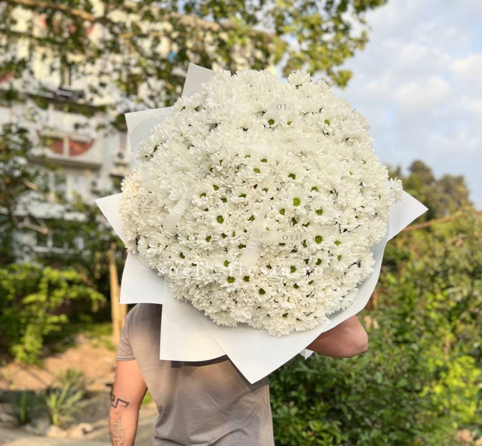 роскошный букет из 101 хризантемы.