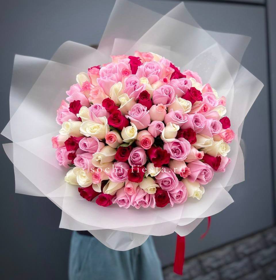 Этот пышный авторский букет в красно-розовых тонах представляет собой гармоничное сочетание страсти и нежности.