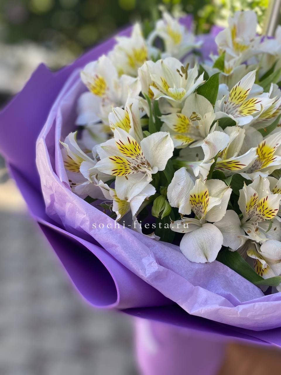 альстромерия - 15 шт., лента, дизайнерская упаковка.