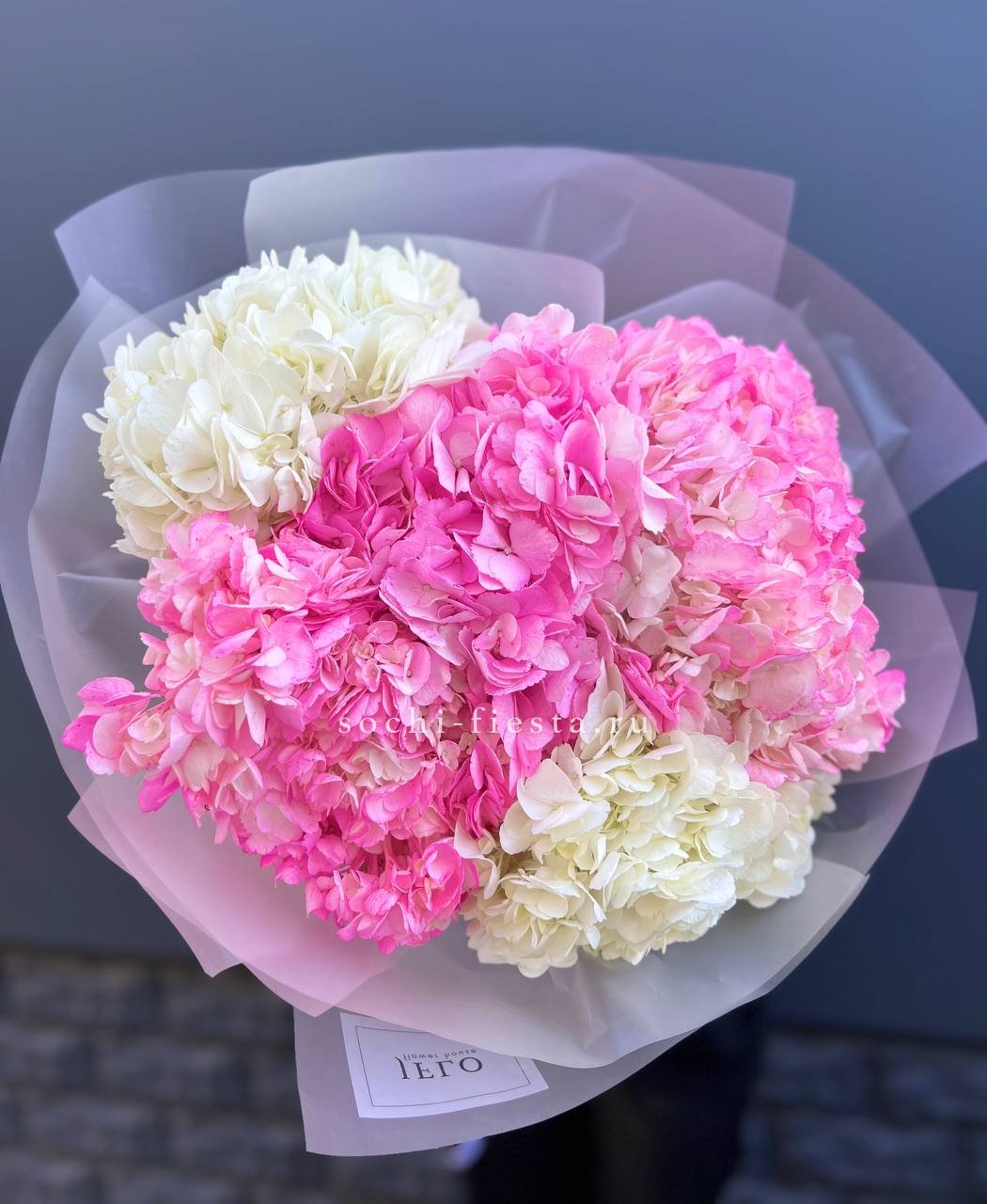 гортензия - 5 шт., лента, дизайнерская упаковка.