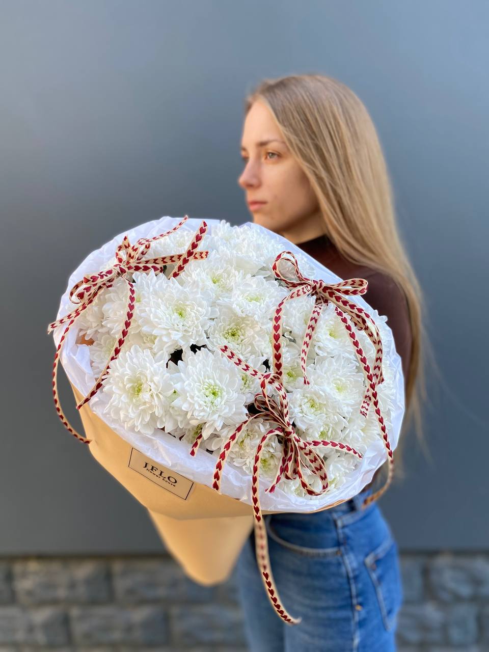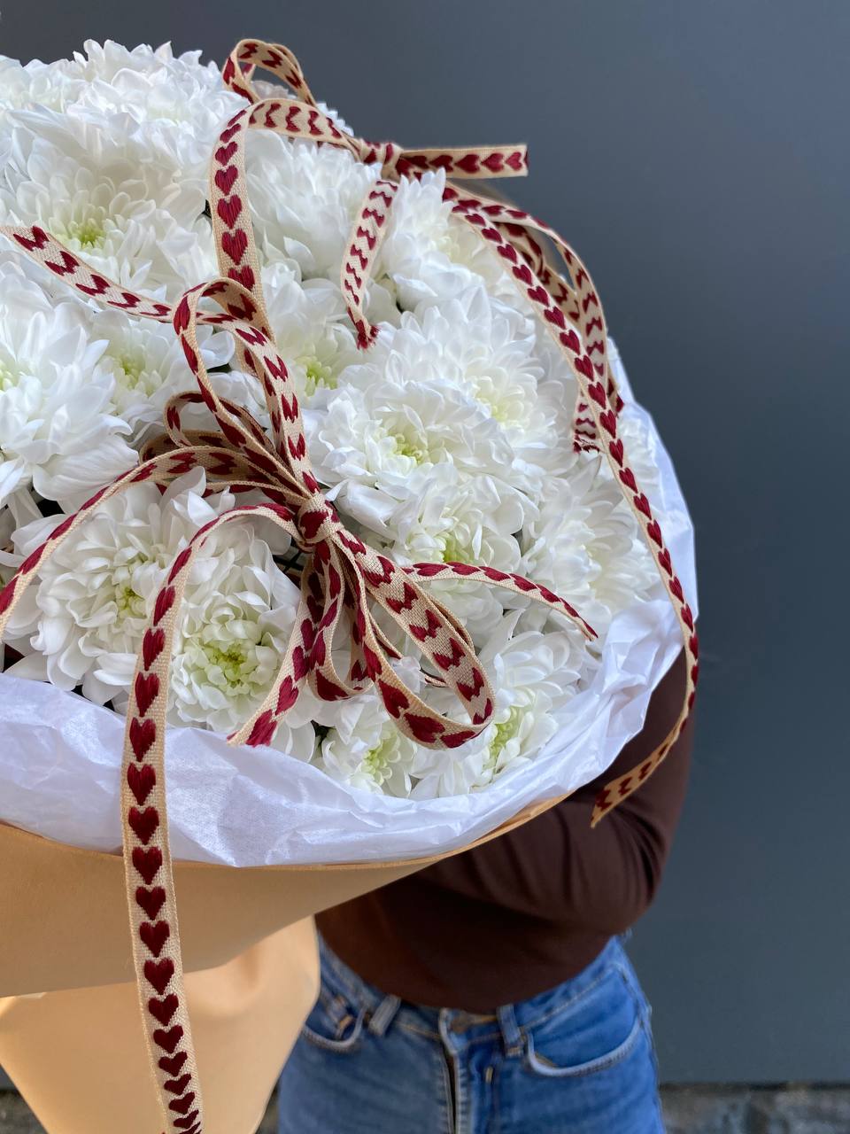 хризантема кустовая - 25шт.,  лента.