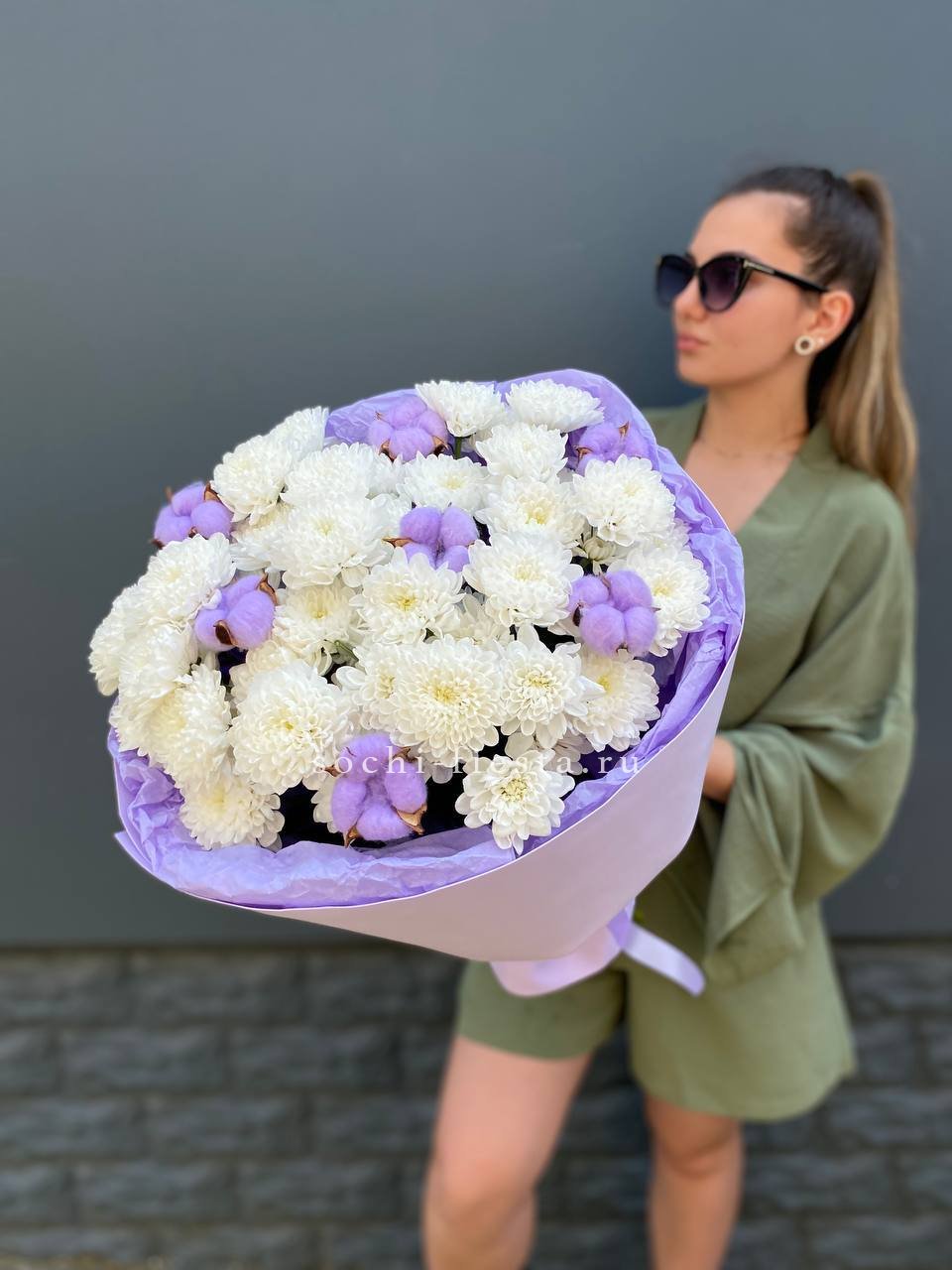 Для заказа товара " Букет хризантем и хлопка" с доставкой в Ставрополи нажмите в корзину