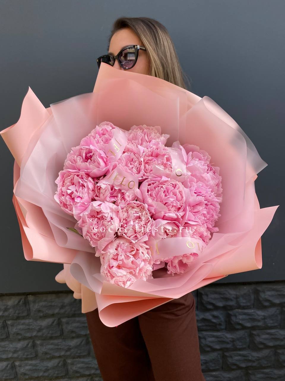 Пятнадцать бутонов в розовой гамме собраны в свободную форму с воздушной структурой. Комбинированная упаковка поддерживает лёгкость силуэта и придаёт букету законченный вид.