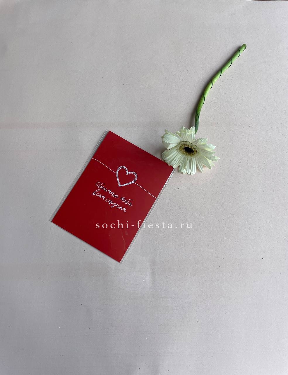Открытка к букету "Обнимаю тебя всем сердцем"
