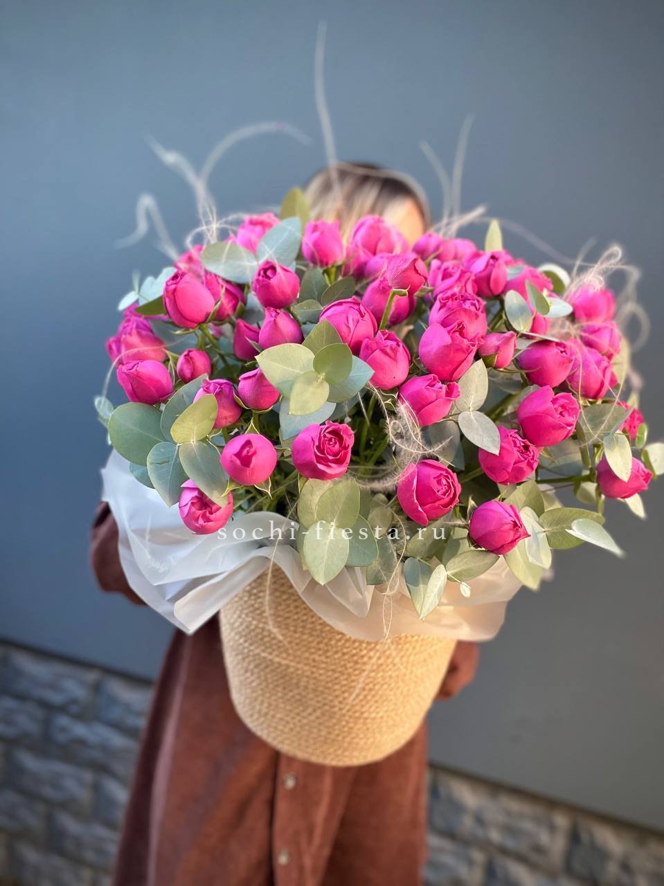 Для заказа товара "Пионовидные розы в джутовом кашпо " с доставкой в Ставрополи нажмите в корзину