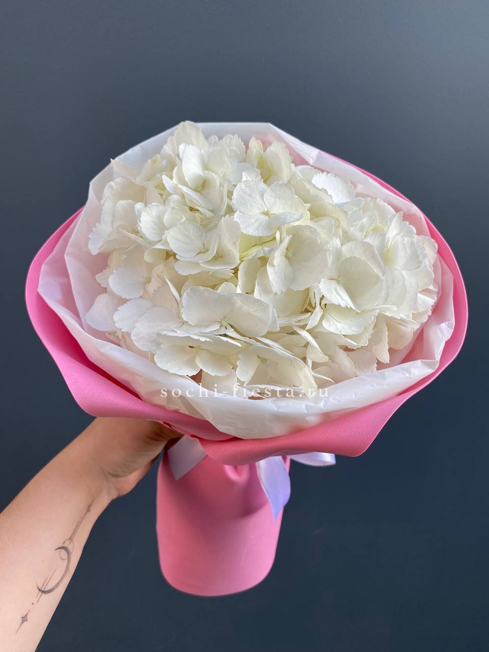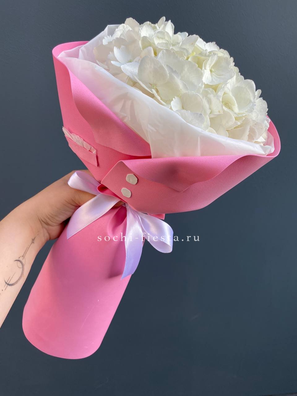 розы, диантусы, пионовидные кустовые розы, гортензия, эвкалипт, вспомогательная зелень, лента, дизайнерская упаковка.