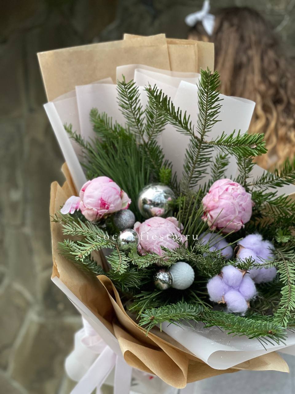 Новогодний букет с пионами