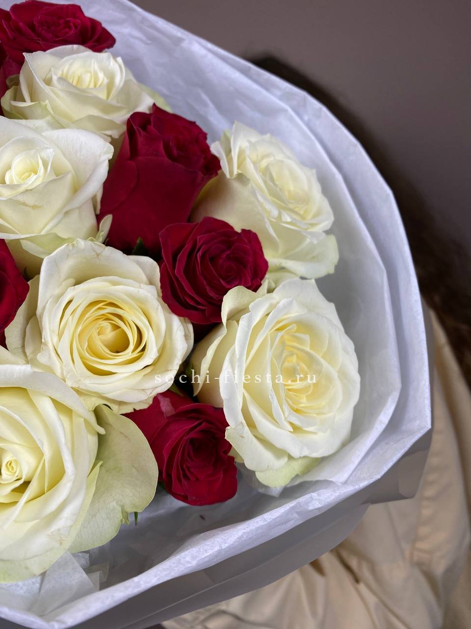 Для заказа товара "Букет из красных белых 15 роз" с доставкой в Ставрополи нажмите в корзину
