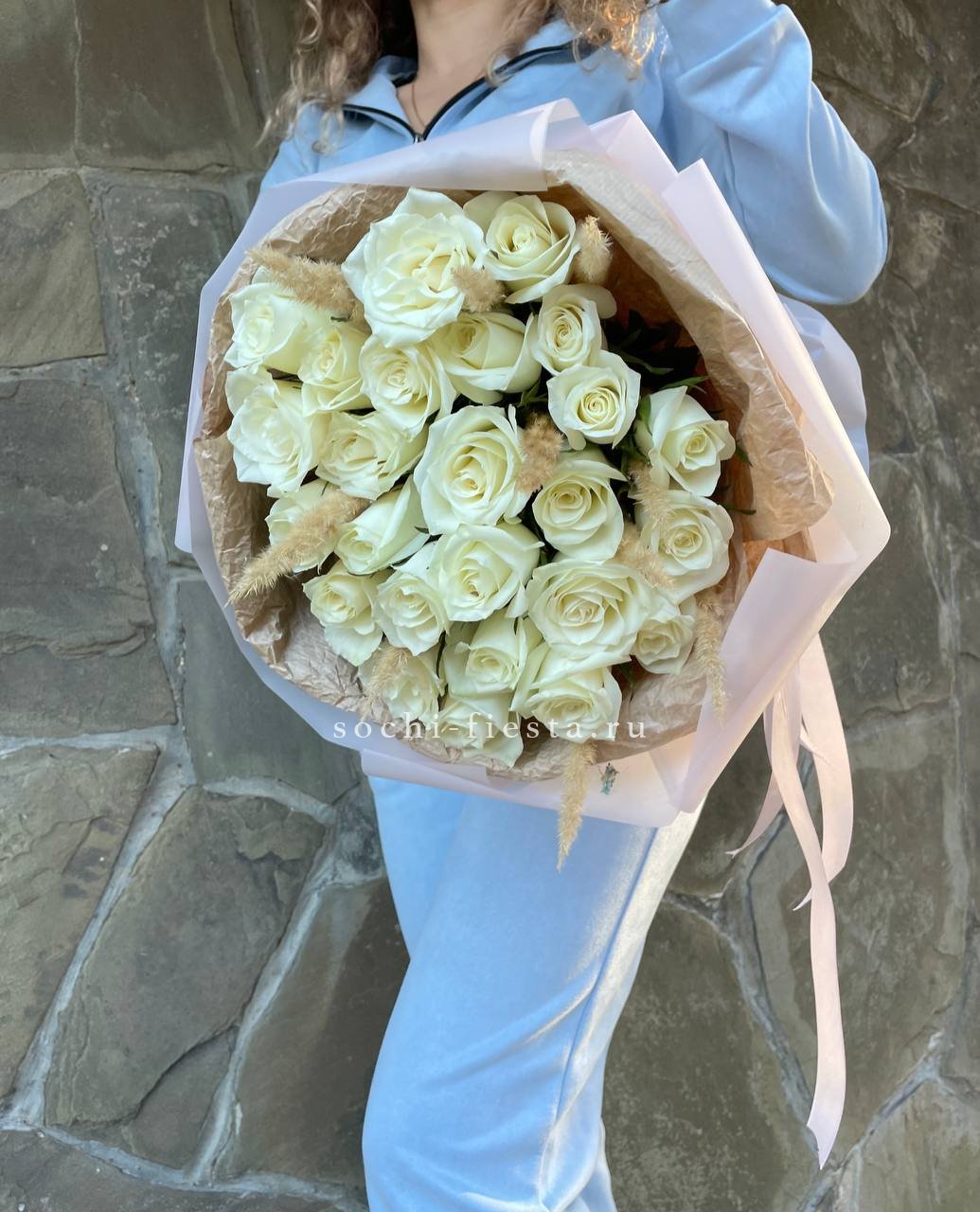 Для заказа товара "25 белых роз с сухоцветами" с доставкой в Ставрополи нажмите в корзину