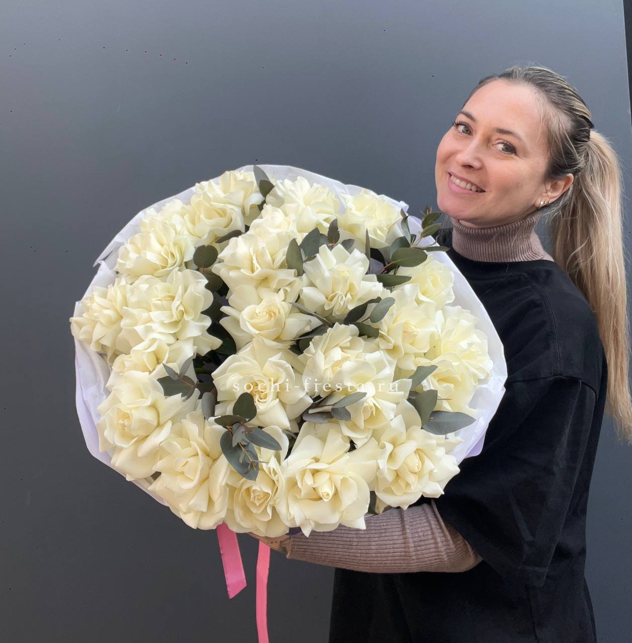 вывернутые розы, эвкалипт, лента, авторская упаковка.
