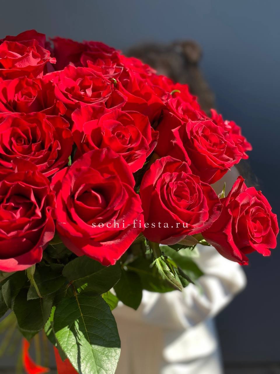 Пятьдесят один белоснежный бутон создаёт объёмное облако с мягкими переходами света и тени. Голландские розы держат форму и заполняют пространство плотной текстурой лепестков.