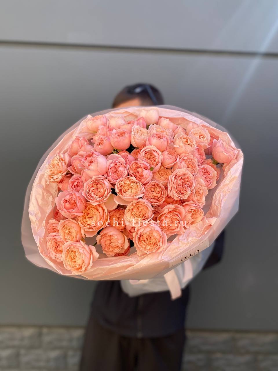 Двадцать одна головка с пышными лепестками формируют округлый силуэт без пустот. Букет держит форму за счёт плотности бутонов, а их равномерное распределение создаёт ритмичную, собранную картину.