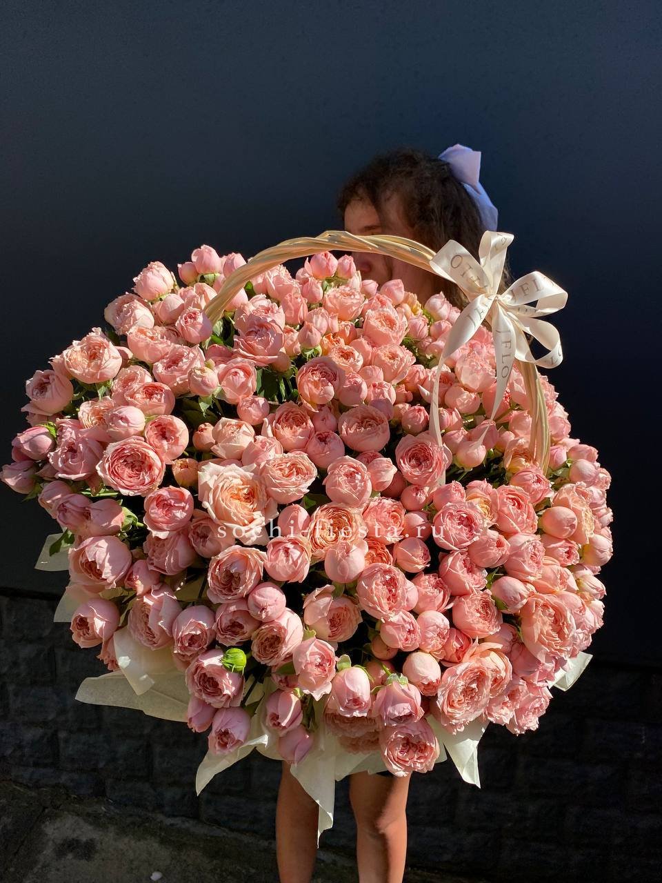 яркая корзина из 101 кустовой пионовидной розы сорта.