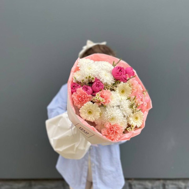 авторский сборный букет для регионального города с сезонными цветами и зеленью