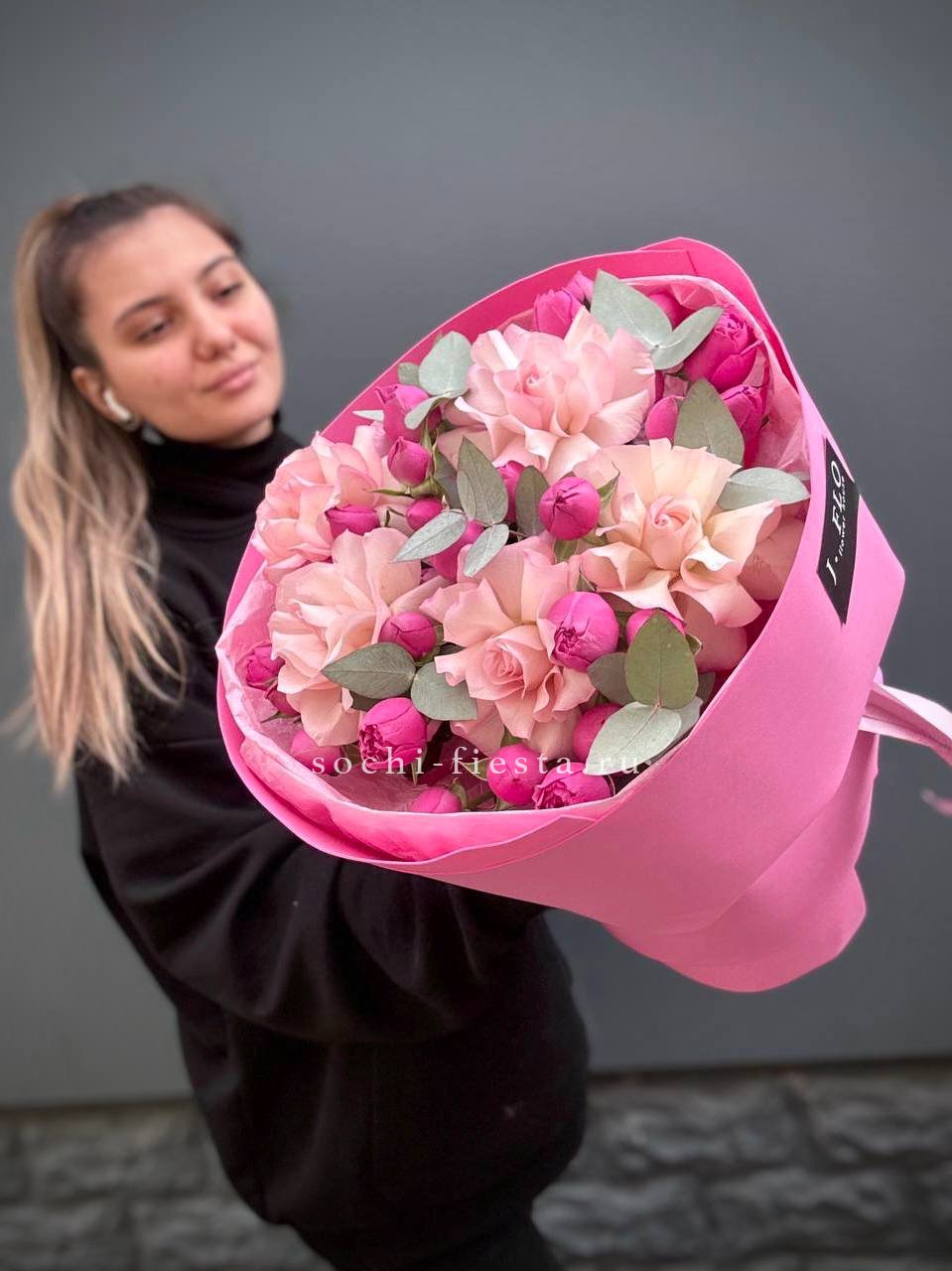 Для заказа товара "Букет французских и пионовидных роз "Ламиносо"" с доставкой в Ставрополи нажмите в корзину