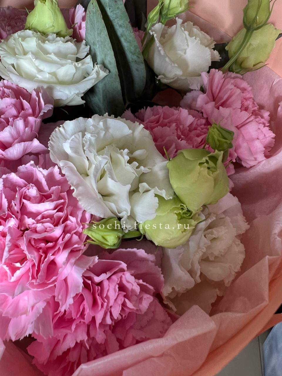 Для заказа товара "Букет гвоздик и эустом "Сири"" с доставкой в Ставрополи нажмите в корзину