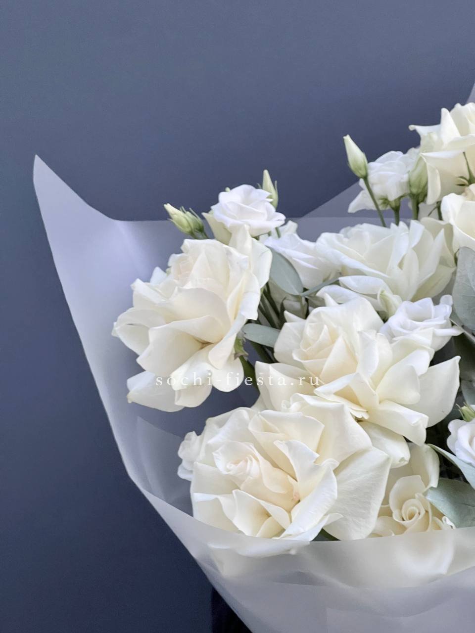Эвкалипт связывает разные текстуры в единое целое, придавая букету завершённость.