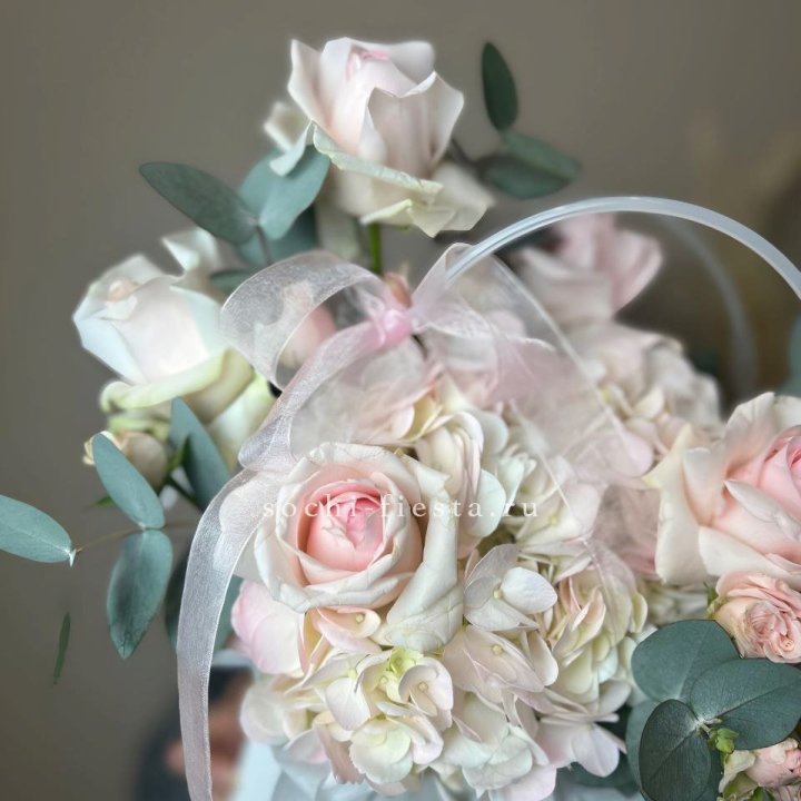 - Шляпная коробка с розами и гипсофилой — универсальный подарочный формат.