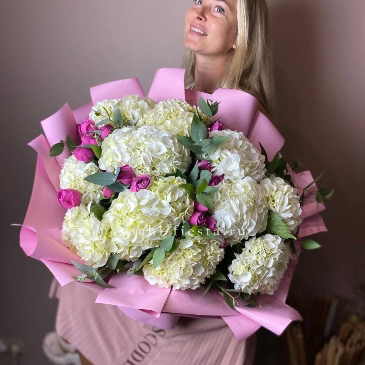 Апрель — ранункулюсы, нарциссы, фрезия. Май — пионы начинают поступать. Июнь — пик пионов и свадебного сезона. Летние миксы с гортензией, эустомой в офисы.