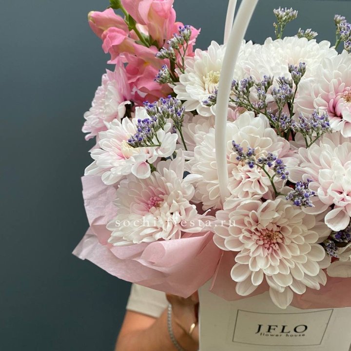 Выписка из роддома — пастельные тона в шляпной коробке с лентой нужного цвета. Поздравление руководителя — в корзине с флористической губкой. Выпускные детей — небольшие букеты в нейтральной палитре.