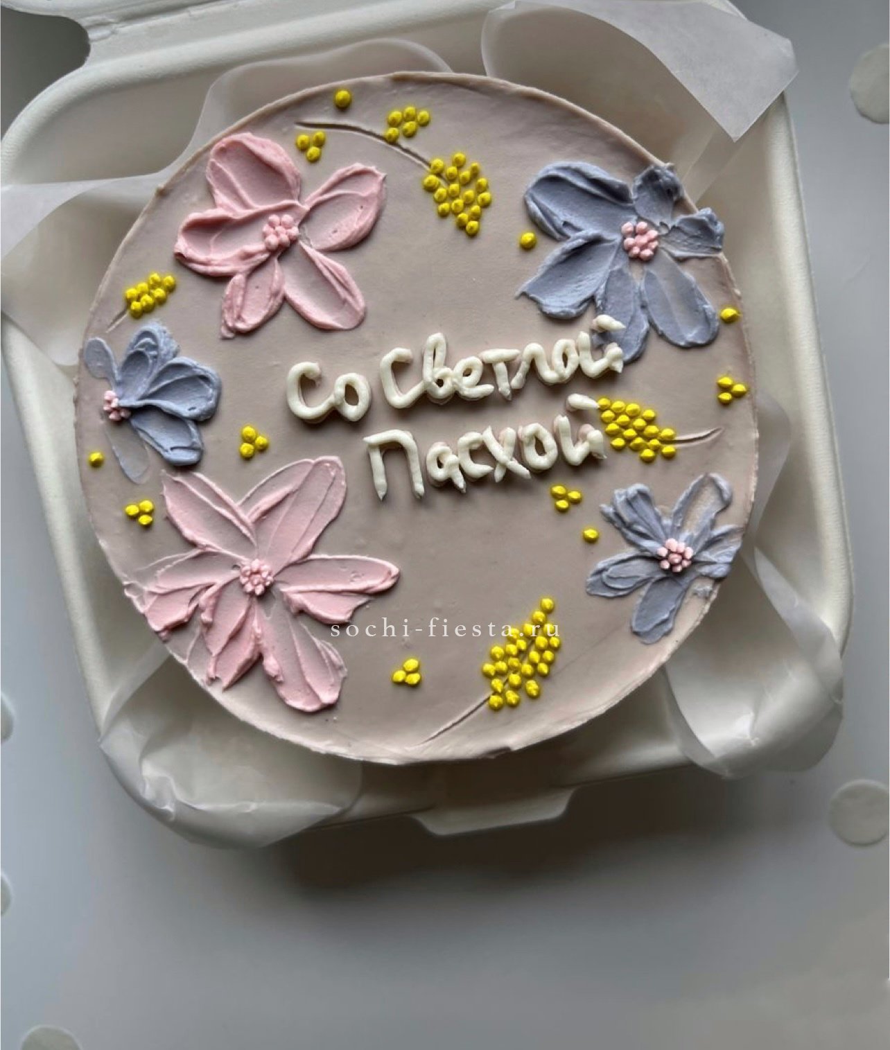 Компактный торт в зелёных тонах с весенним оформлением. Ручная работа и авторский декор делают каждый десерт уникальным. Две начинки на выбор для разных вкусовых предпочтений.